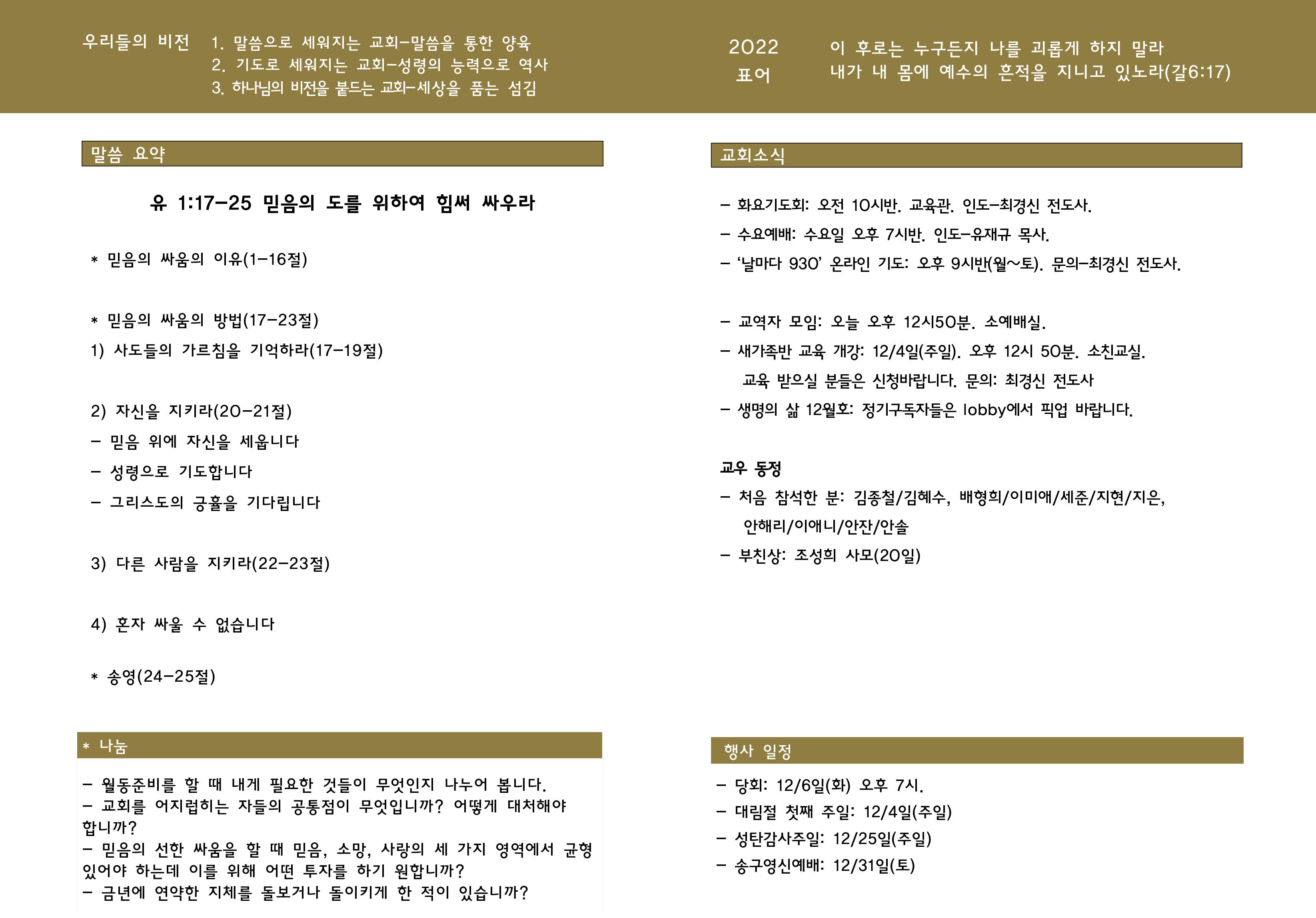 교회소식 . 22년 11월27일 주보 Author hgchoi Date 2011-10-29 22:32 Views 815 Like 0 Unlike 0 Print List Prev Next Powered by KBoard
