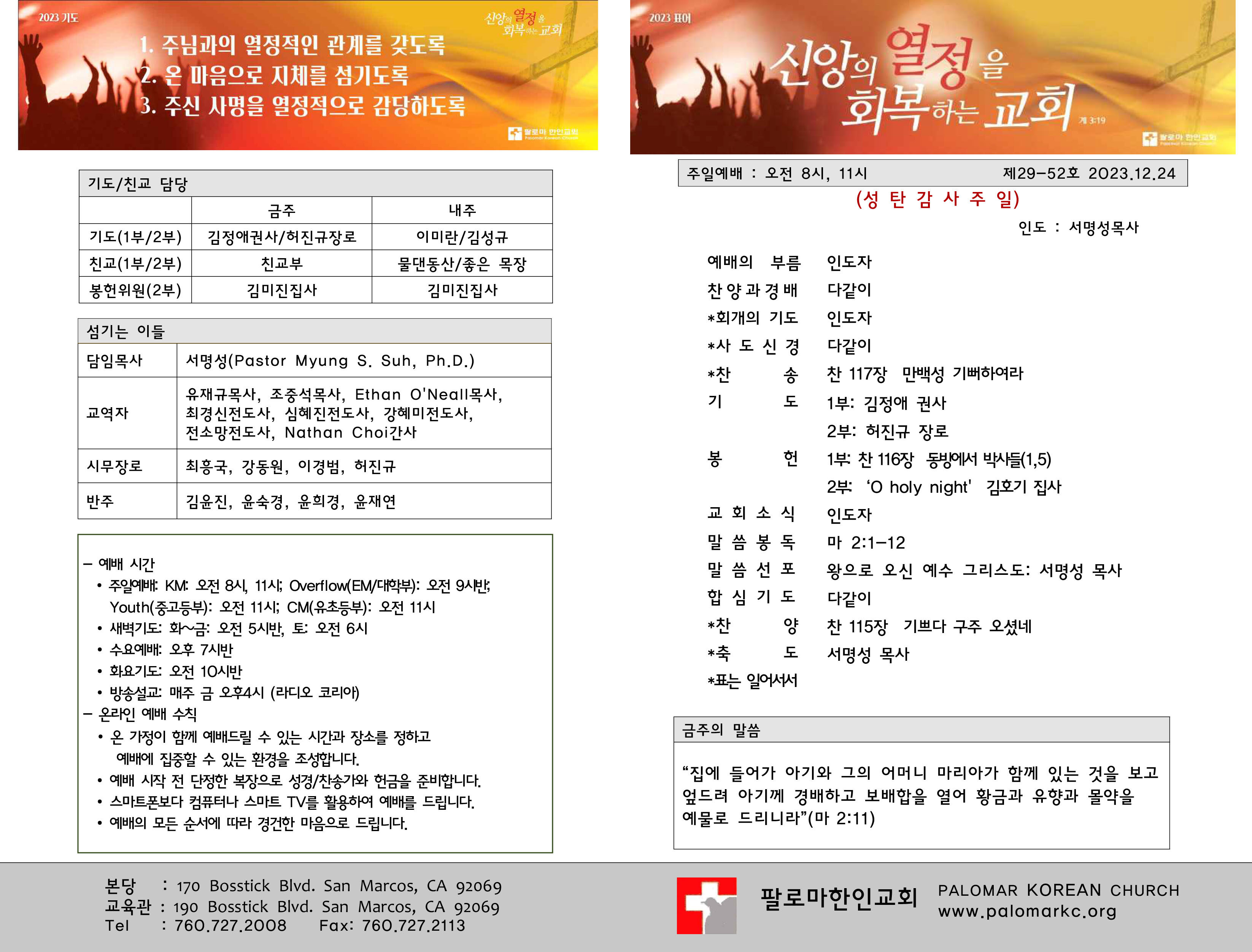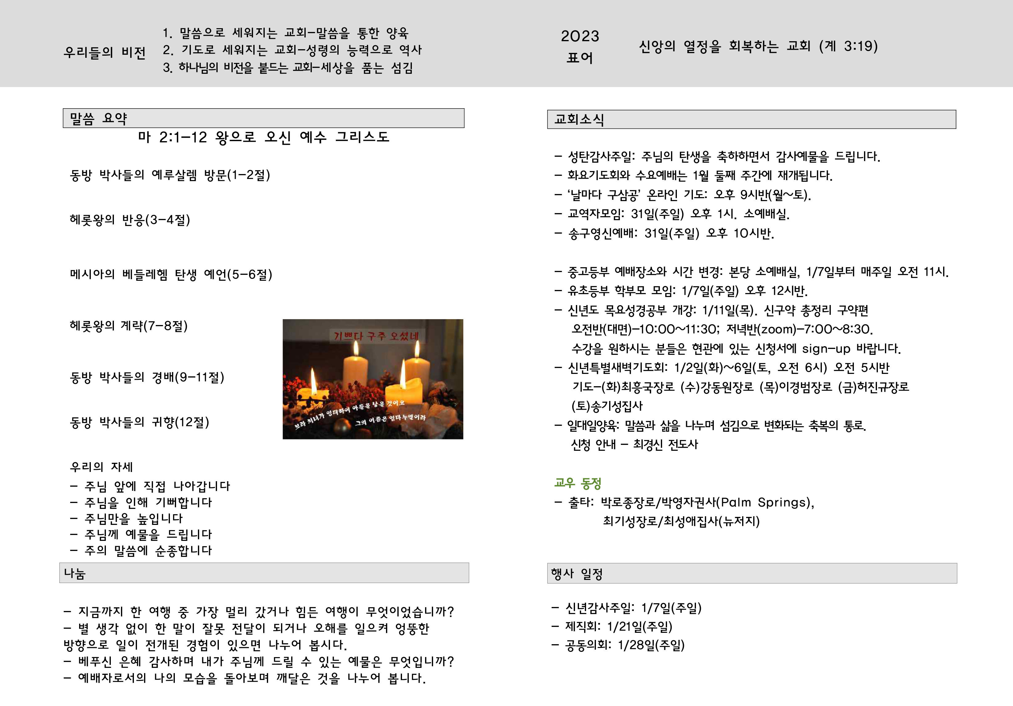 교회소식 . 23년 12월 24일 주일 Author JungS. Date 2024-01-06 23:33 Views 714 Like 0 Unlike 0 Print List Prev Next Powered by KBoard