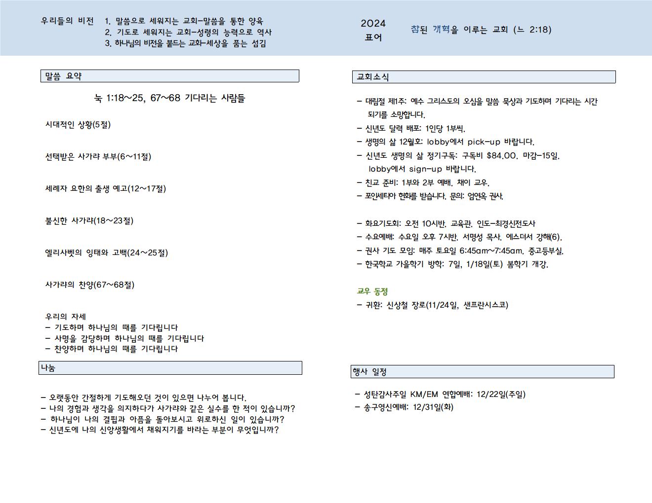 교회소식 . 24년 12월 1일 주일 Author JungS. Date 2024-12-07 21:37 Views 450 Like 0 Unlike 0 Print List Prev Next Powered by KBoard